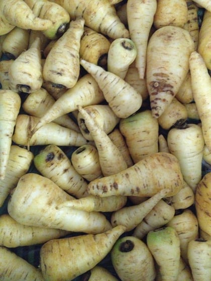 In Küttigen bei Aarau wird diese alte robuste Schweizer Landsorte seit je von den lokalen Bäuerinnen kultiviert. Das „Küttiger Rüebli“ hat eine grosse, weisse, konische Wurzel mit intensiv aromatischem Geschmack.